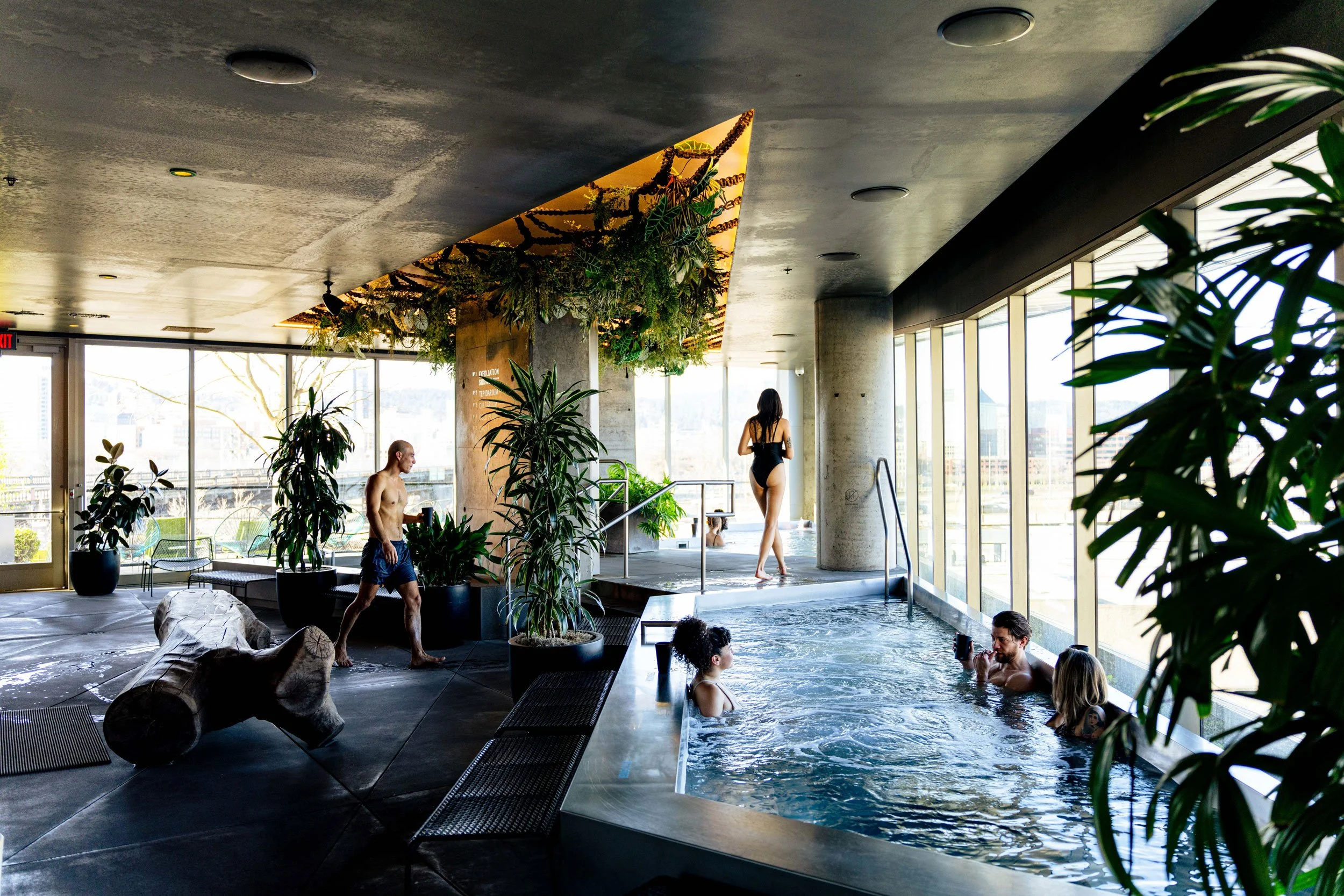Our services include massage and skincare, group fitness and studio classes, and 1-on-1 personal training. We are also home to The Springs, our hydrotherapy oasis featuring hot pools, a sauna, a steam room, and a cold plunge overlooking the city skyline and the Willamette River.